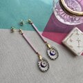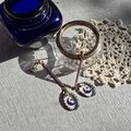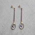 淡いむらさきのガラススティックビーズの先に、月と星が浮かぶヴィンテージガラスを合わせたピアス。