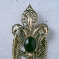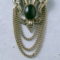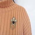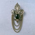 fleur-de-lis black cabochon rhinestone chain dangle ヴィンテージブローチ