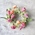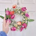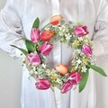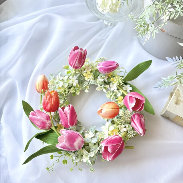 のびやかチューリップの春リース(直径約27cm) /アーティフィシャルフラワー/BOX付き/新築祝い/