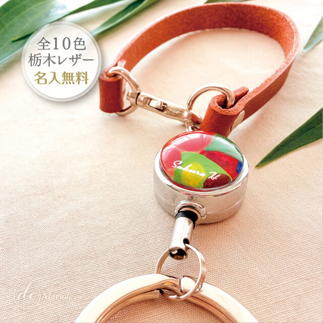 リールキーホルダー 栃木レザー 名入れギフト オレンジ 南国 リゾート エキゾチック タヒチ 抽象画 緑 グリーン パスケース ホワイトデー 母の日 プレゼント marudemaru まるでまる