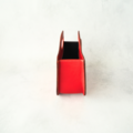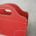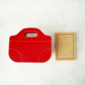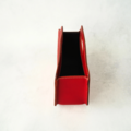 鮮やかな赤色の革はツルッとなめらかな牛革です。