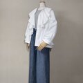 袖口にはギャザーを入れて柔らかな雰囲気をプラスし、ゆったりとしたシルエットに仕上げています。袖口はスラッシュ(縁取り)あきで7cmの幅広カフス仕立てです。幅広なので折り返すアレンジもできます。