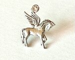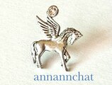 アメリカ製の ペガサス の モチーフ(ピューター製 23mm ×18mm)にスワロフスキーを一粒あしらって ピンブローチを作りました。