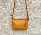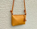 【姫路レザー】BASICショルダーバッグ(シンプル/コンパクト/メンズ/レディース/ファスナー/旅行/斜め掛け)キャメル