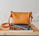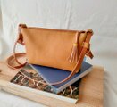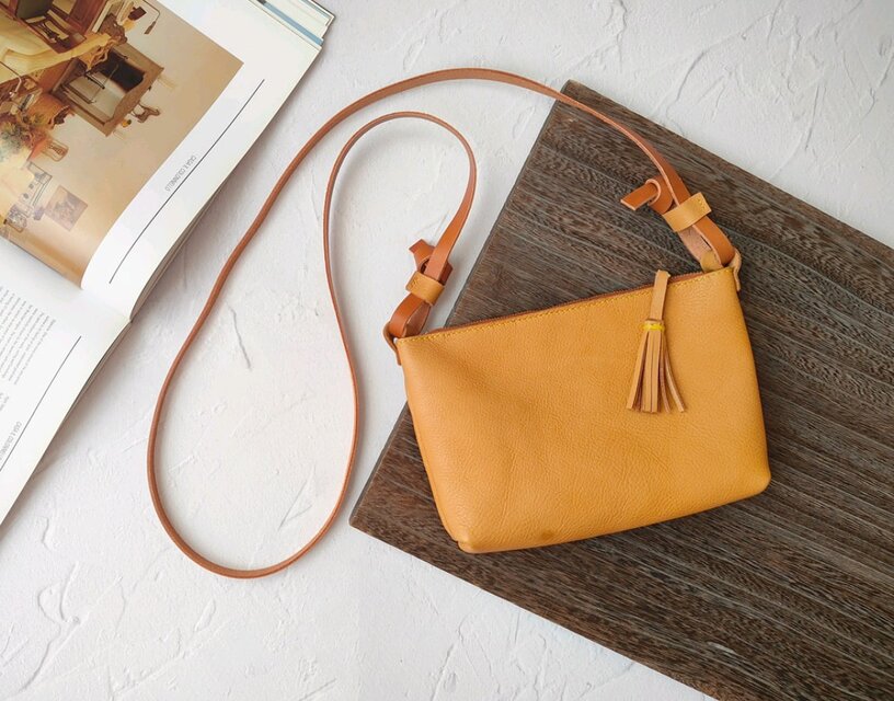 ・キャメルのショルダーバッグは、様々な服装に合わせることができます。