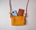 < 手縫いで仕立てました、ミニマムデザインのレザーショルダーバッグです>