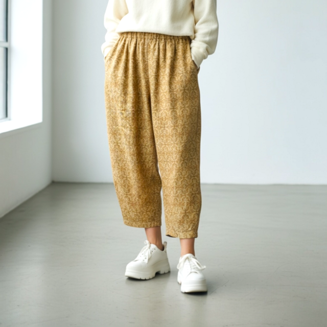 シンプルなコクーンパンツに仕立てました