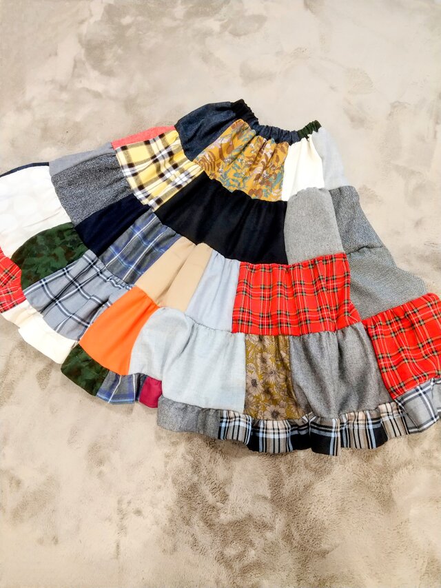 セール!!いろいろパッチワーク5段フリルティアードスカート
