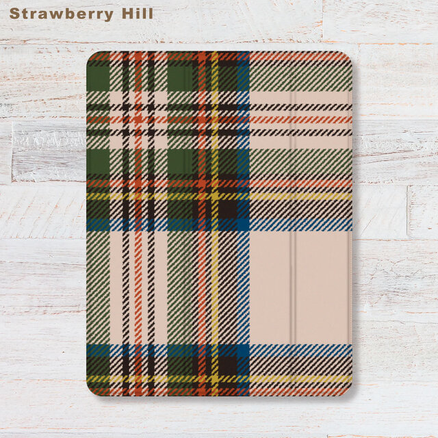タータンチェック iPadケース ペン収納 軽量 背面クリア あいぱっどけーす スタンド機能