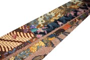 表面だけでなく裏面にも、厳選したジャワ更紗の綿生地を使用。両面ともに切嵌手法で仕立てているため、変わり結びをした際に覗く裏側の柄までもが、一つの芸術作品のような深みを見せます。