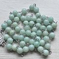 タンザニア産グリーンフェルスパー(流通名はグリーンムーンストーン)のロザリオです。