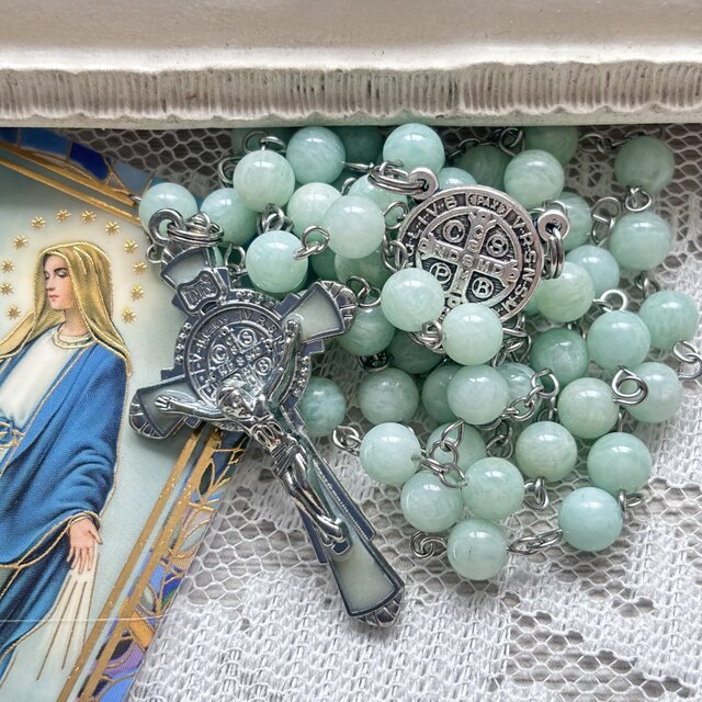 お品受取りしました。2つ共に良い出来上りで、丁寧に包んで下さり有難うございました。 このような大きな玉とメダイで大変だったのではないかと申し訳なく思います。
