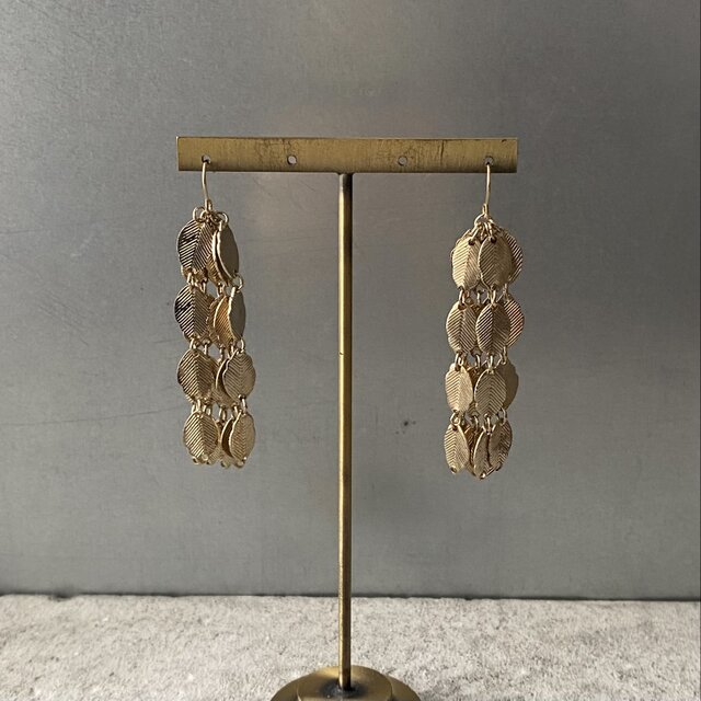 小さなリーフパーツがタッセルのように揺らめくヴィンテージピアス。ほどよいボリューム感でお顔まわりを華やかな雰囲気にしてくれます。