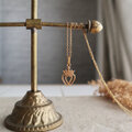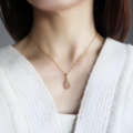 マットゴールドのやわらかな輝きが上品で、小ぶりながらも胸元にそっと存在感を添えてくれます。