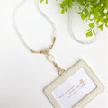 天然石ネックレスとしても..【2way*クリスタルネックストラップ&パスケース/アイボリー】IDホルダー 社員証 名札