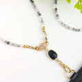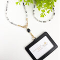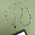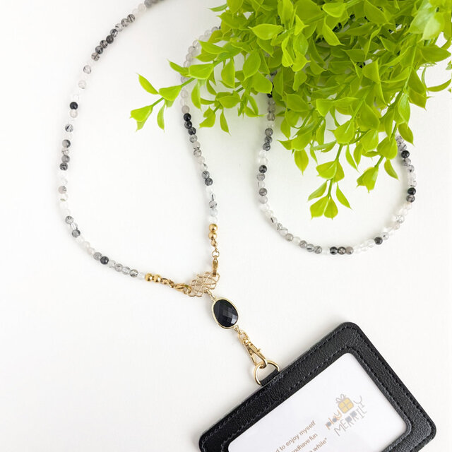 天然石ネックレスとしても..【2way*トルマリンクォーツネックストラップ&パスケース/ブラック】IDホルダー 社員証 名札