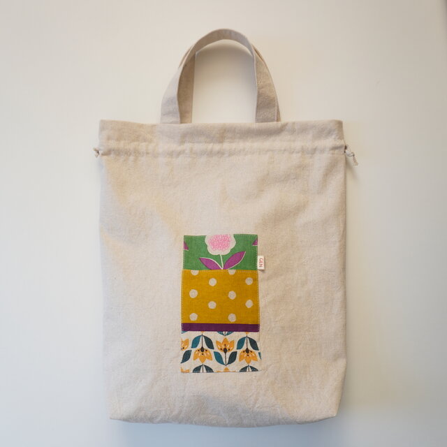 シューズバッグとして作りましたが、トートバッグとしても普通にお使い頂ける形です。