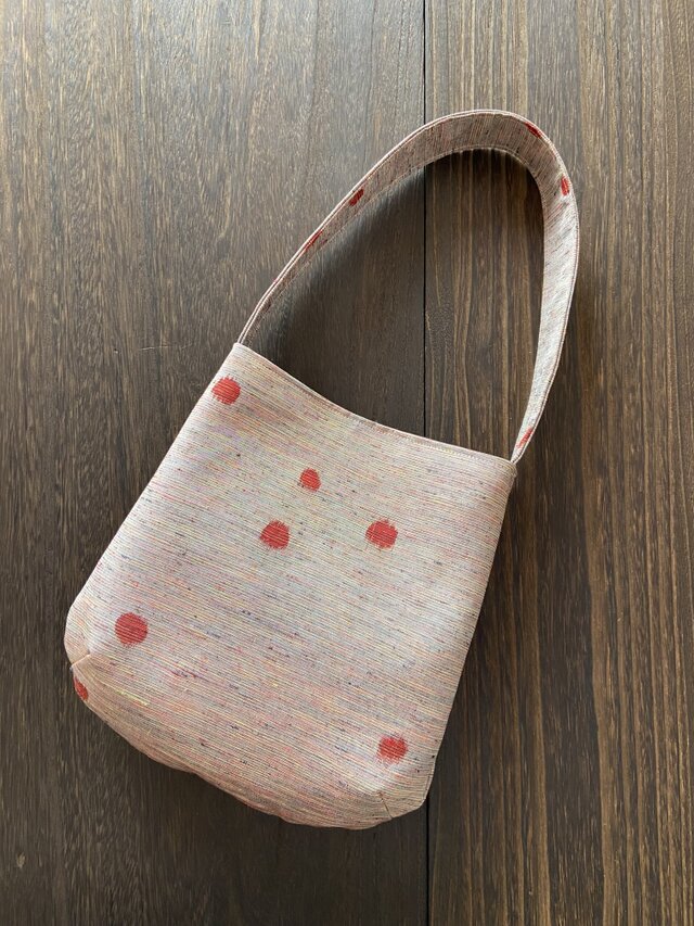ランダムな水玉が素朴な印象の紬、シンプルなワンハンドルバッグです。