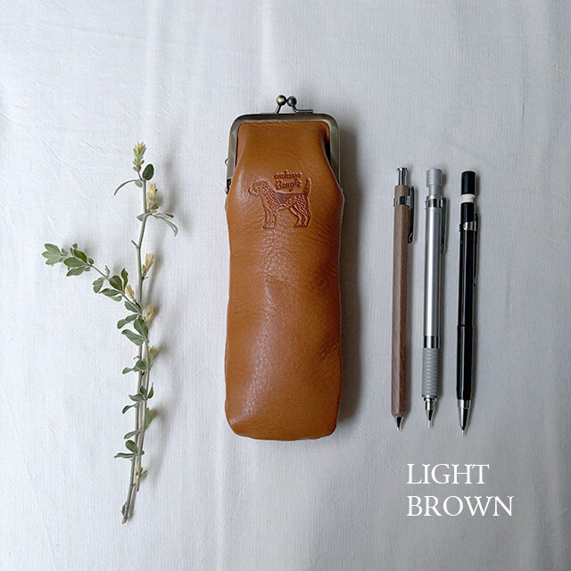 本革が放つ温かみと、ワンポイントの刻印が魅力のペンケース。