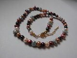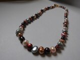 いろんな色の手持ちの「淡水パール」を繋いでネックレスにしてみました。