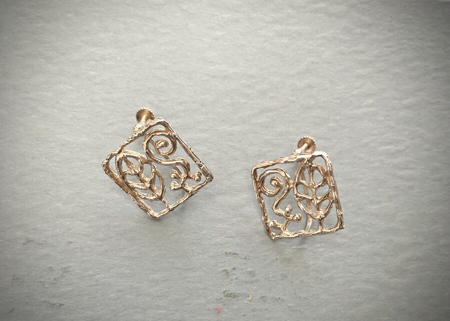 葉っぱとツルを額縁に閉じ込めてイヤリングにしました。