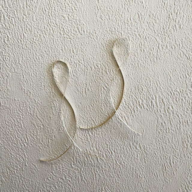 既製品のピアス金具などは一切使わず、手作業のワイヤーワークによって、1本の継ぎ目ないワイヤーで完結するシンプルなデザインです。