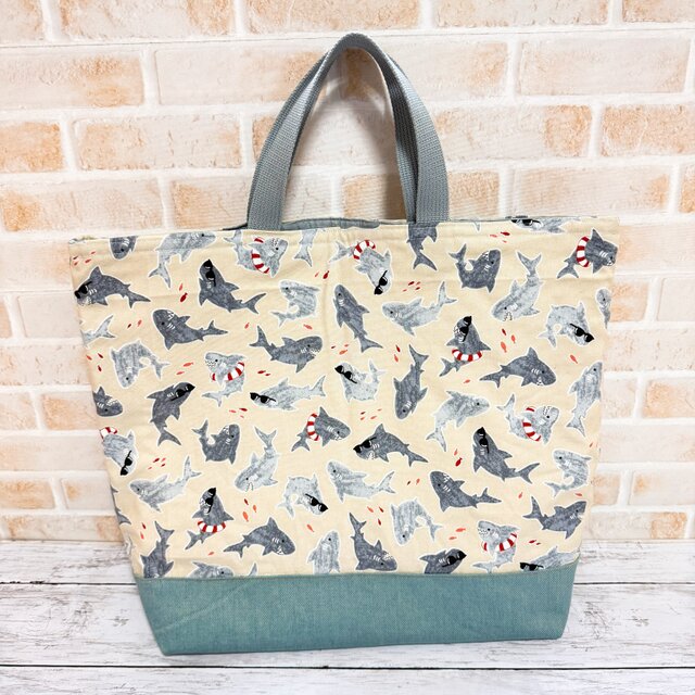 大きいレッスンバッグ(裏キルト) 【サメ】