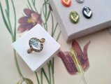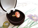 セッティングはクラシカルな雰囲気たっぷりの王冠を思わせる、クラウン型で真鍮ならではの古代金色の指輪です。オプションでカメオの色が変更できます。小さな箱に入れてお届けします。