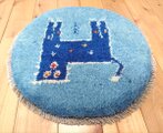 イラン・シラーズ地方の遊牧民(カシュガイ族)が、羊やテント、動物や自然等をモチーフに、自分のインスピレーションで織り描く素朴な手織り絨毯です。