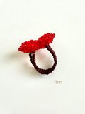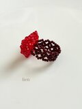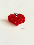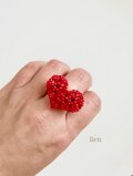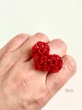 ガラスビーズや丸小ビーズを使って作ったハートモチーフの指輪です。