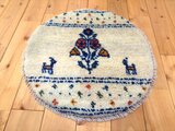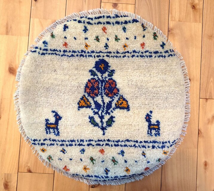 職人が一結び一結び、使う人の幸せを願って織り上げたギャッベ。丸い形は空間を柔らかく演出し、椅子の上や足元に置くだけで、そこがあなただけの「一番落ち着く場所」に変わります。日々の暮らしに、ペルシャの太陽と大地の恵みを添えてみませんか?