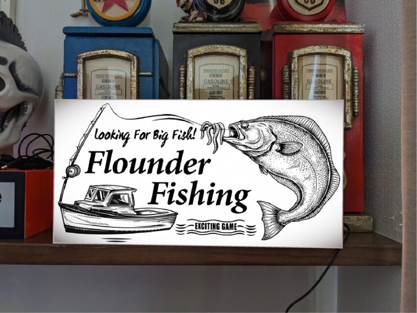 【オーダー無料 Lサイズ】 カレイ 鰈釣り 海 船釣り フィッシング 店舗 自宅 照明 ランプ 看板 置物 雑貨 ライトBOX