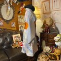 ❁︎着崩れ防止、強度を持たせるために太めのウエストゴムを使用しております。また、お着物の形を最大限に活用した特性上、ウエスト部分の布が厚くなっています。付属の帯ベルト等を装着するとお写真の様に目立ちません。