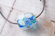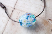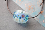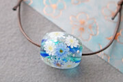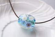ガーベラのとんぼ玉(ガラス玉)泡入り/ブルー