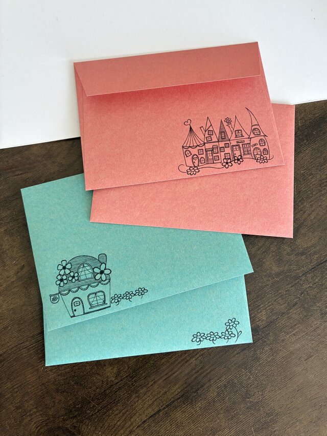 2種類の家イラスト入り封筒。
