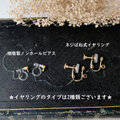 イヤリングのタイプは、ノンホールピアス、ネジバネ式イヤリングの2種類ございます。