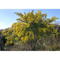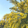 ミモザ写真、1枚目は去年春のものです。その他は2026/2月、全景は2/22のものです。全景中央が緑色なのは、朝日が当たって開花が早い枝から切っているからです。