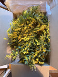 箱に入れたミモザ写真は、去年春のものです。同じにはならないことをご了承ください。