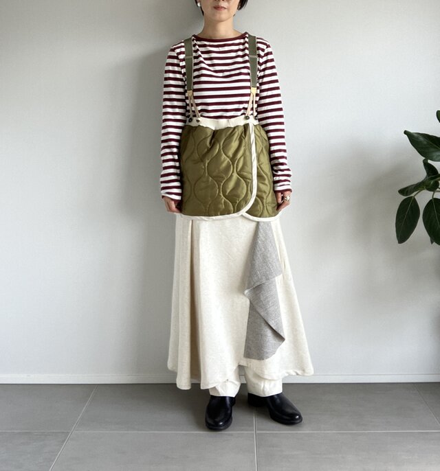 Color: キルティングスカートカーキ×オフホワイト×