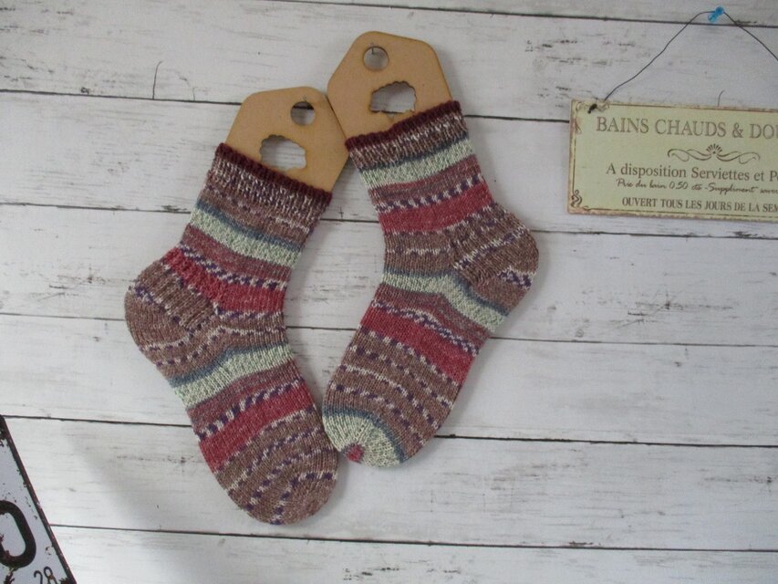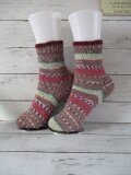 ドイツのブランド Opal KFS 114おばあちゃんの笑顔 & Uni 5196 Burgundで編んだ靴下です。