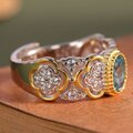 ブルートパーズを引き立てるリングで、周囲にはキラキラと輝く石をあしらいました。このリングは、手元に華やかなアクセントを加えるだけでなく、持ち主の個性を引き立てます。ブルートパーズの爽やかな青が、見る人に清々しい印象を与え、リングを身につけるたびに気分も明るくなることでしょう。美しく配置された輝く石たちは、まるで星空のように、指先で優雅に輝き、どんな場面でも注目を集めること間違いありません。このリングは、特別な日の贈り物としても、自分へのご褒美としても最適です。