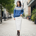 ヨーク部分は一針ずつ心を込めた手編みで、身頃や袖は家庭用編み機を使用することで、手仕事の温もりと既製品のような美しい編み目を両立させています。