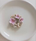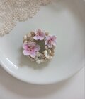 ピンク色に染めたさくら、ベージュのかすみそうで、可愛いリースブローチに仕上げました。