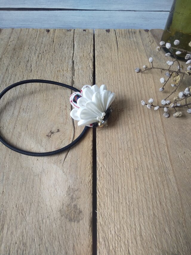 白生地メインにパープルのペイズリー柄を組み合わせて制作致しました。