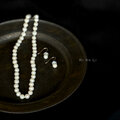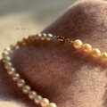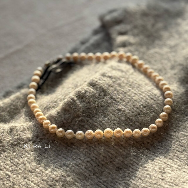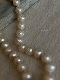 カットが施された7mmほどのパールをシルク糸で連ねてショートネックレスにしてみました。