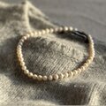エクリュ色の柔らかいシルク糸を使用し、パール粒一つ一つの間にノットを入れて仕上げています。