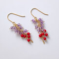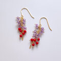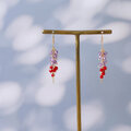 14KGF ピンクアメジストとレッドコーラルのチェーンピアス イヤリング