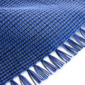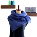 きれいなブルーのコットン糸と細く繊細なネイビーのコットン糸、そして天然素材を生かし太さや撚りに変化があり上品な光沢があるリネン糸を使用し、鮮やかなのに落ち着いた色合いのストールに仕上げました。着こなしの差し色としてしても活躍しそうです。