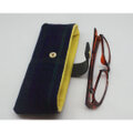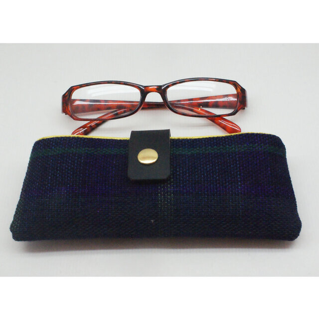 手織りリネンのメガネケース横型 ダークブルー