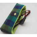 手織りリネンのメガネケース横型 ダークグリーン